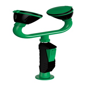 Body: Solid Brass Coating: High gloss epoxy powder, resistant to most chemicals, UV fading & heat Spray Head: Soft rubber, softened water spray for eye protection Dust Cup: PP, removed automatically when eye wash is operated Hose: Length 1.5m, PVC pipe with stainless steel wire braided, wrapped by PE pipe for rust and leakage relief Max. working pressure:6 Bar